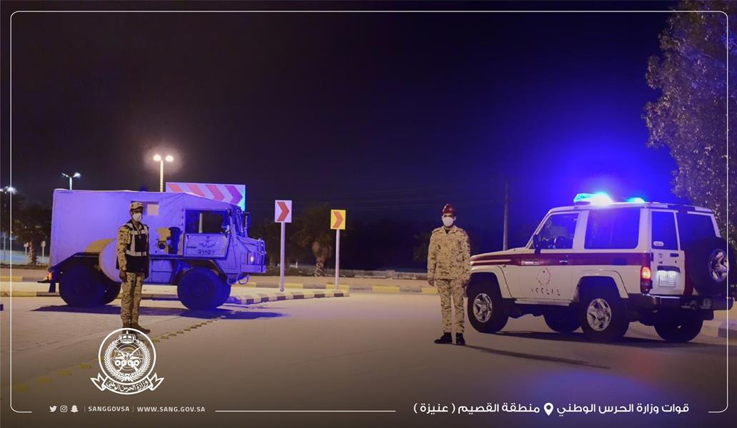 انتشرت قوات الحرس الوطني في شوارع مدينة عنيزة بمنطقة القصيم لتطبيق قرار منع التجول، للحد من انتشار فيروس “كورونا” المستجد.