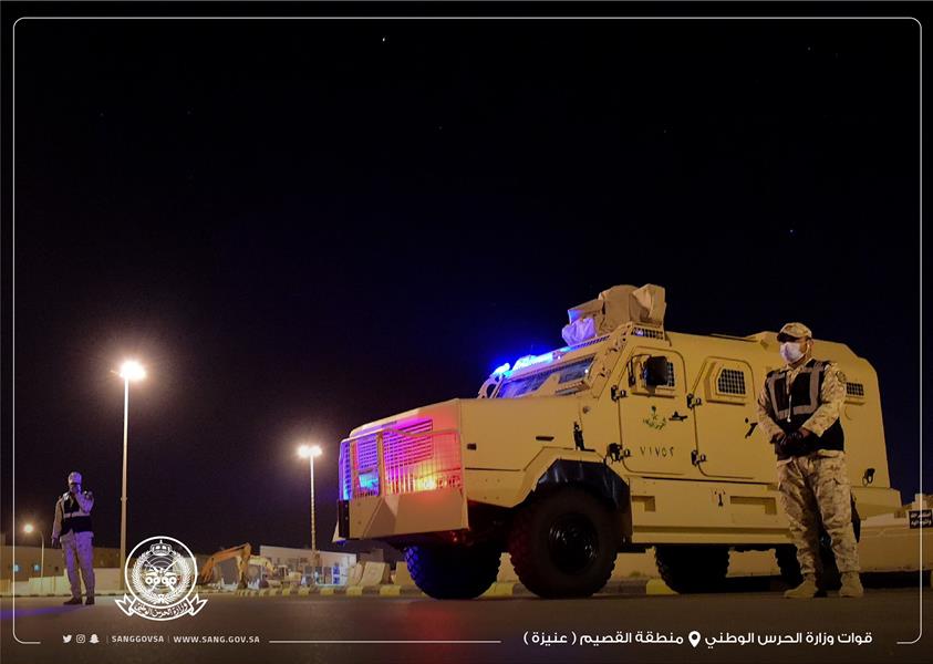 انتشرت قوات الحرس الوطني في شوارع مدينة عنيزة بمنطقة القصيم لتطبيق قرار منع التجول، للحد من انتشار فيروس “كورونا” المستجد.
