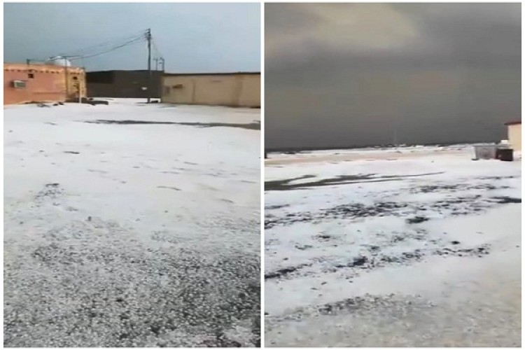 ورصد المواطن في الفيديو هبوط أمطار الخير والبركة على مدينة النخيل اليوم الاثنين 1441/8/27 هـ، وقد صاحبت معها زخة من البرد، حيث كشف المواطن أن الثلوج هطلت على المدينة، من سحابة واحدة فقط، وهي أول مرة بالتاريخ يرى فيها هطول الثلوج على مدينته على حد قوله.