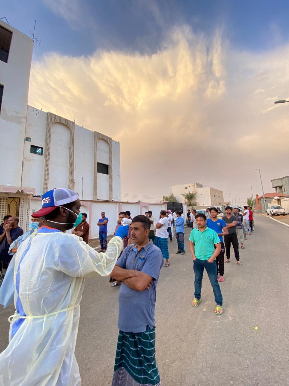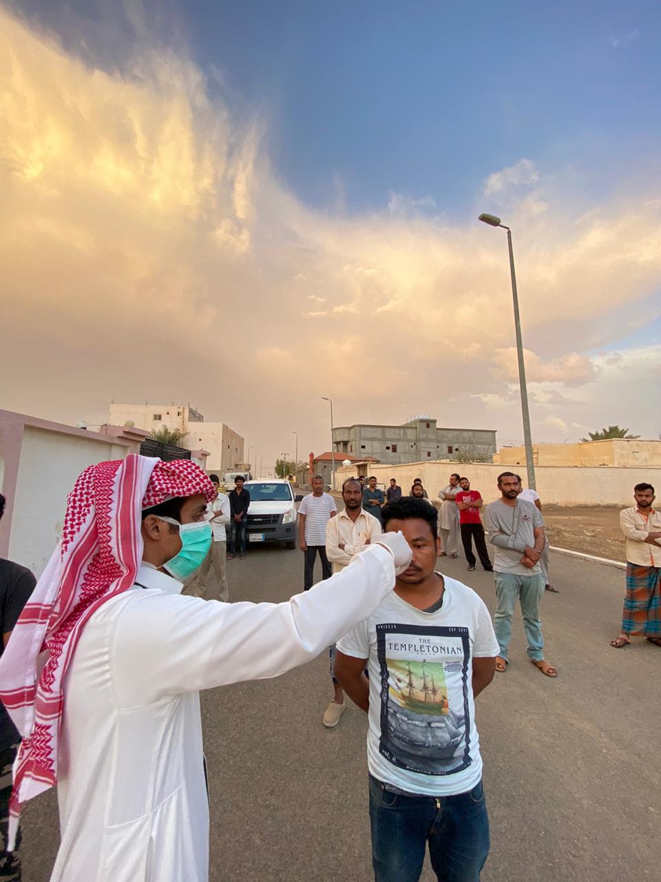 وجرى خلال الجولات قياس درجات الحرارة للعمالة ، والتحقق من عدم وجود الأعراض عليهم، وتقديم التوعية الصحية اللازمة لهم بعدة لغات.
