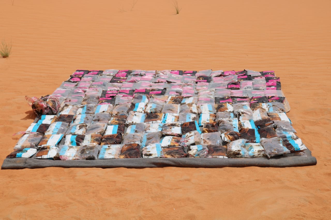 صرح المتحدث الرسمي لحرس الحدود، المقدم مسفر بن غنّام القريني، بأن المتابعة المستمرة لمحاولات تهريب المواد المخدّرة والتسلل عبر حدود المملكة البرية والبحرية أسفرت، بتوفيق الله، خلال شهر شعبان من عام 1441هـ، عن إحباط عدة محاولات لتهريب ما مجموعه (1076) طن وستة وسبعون كيلو جراماً من مادة الحشيش المخدّر في مناطق جازان ونجران وعسير، و(1377) طن وثلاث مئة وسبعة وسبعون كيلوجراماً من مادة القات المخدر في منطقتي جازان وعسير، وتم القبض على المتورطين فيها وعددهم (101) مئة وشخص واحد، بينهم (36) ستة وثلاثون متهماً من الجنسية الإثيوبية، و(31) واحد وثلاثون متهماً من الجنسية اليمنية، و(27) سبعة وعشرون متهماً سعودي الجنسية، و(3) ثلاثة متهمين من الجنسية الصومالية، ومتهمان من الجنسية الإرتيرية، ومثلهما من الجنسية الأردنية، وذلك بعد رصد تجاوزهم الحدود للمملكة.