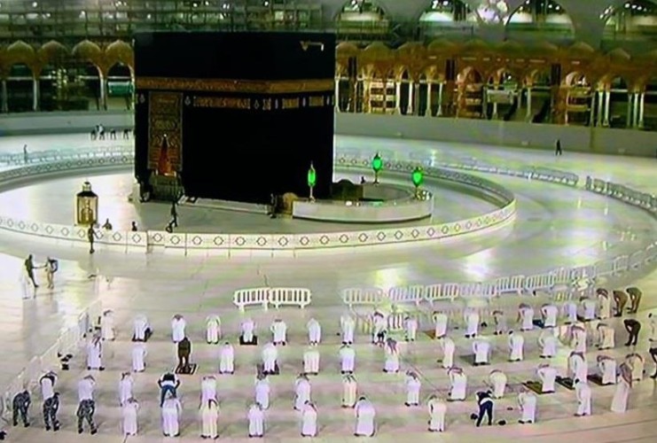 وتقتصر الصلاة في المسجد الحرام على منسوبي رئاسة شؤون الحرم المكي والقطاعات العاملة فيه، بعد أن وافق خادم الحرمين الشريفين الملك سلمان بن عبدالعزيز على إقامة صلاة التراويح في الحرمين الشريفين وتخفيفها إلى خمس تسليمات.