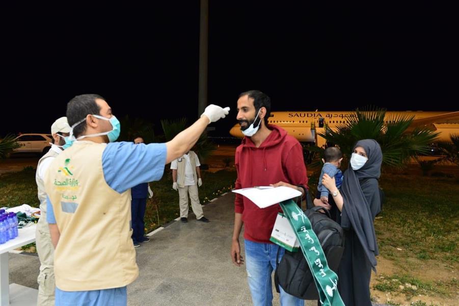 وقد طبقت على العائدين، جميع التدابير الصحية والوقائية من فيروس كورونا المستجد (كوفيد-19)، فوقع الكشف الطبي في المرحلة الأولى على الركاب في مطار بلد المغادرة، قبل صعودهم إلى الطائرة التي روعي فيها ضمان وجود مساحات بين الركاب، وعند وصول الرحلة إلى مطارات المملكة اتخذت هيئة الطيران المدني الإجراءات التي يتم من خلالها نزول الركاب من الطائرة بطريقة مقننة لضمان عدم الاصطفاف المتقارب والانتشار داخل صالات السفر، إضافة إلى توفير منطقة تعقيم عند بوابة جسر الإركاب.