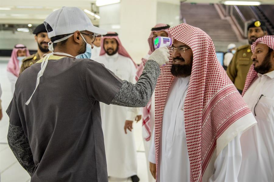 اتبع الرئيس العام لشؤون المسجد الحرام والمسجد النبوي الشيخ عبدالرحمن السديس، والأئمة والمؤذنون ورجال الأمن ومنسوبو ومنسوبات الرئاسة العامة، الإجراءات الطبية الاحترازية أثناء دخولهم المسجد الحرام للوقاية من فيروس “كورونا” المستجد.