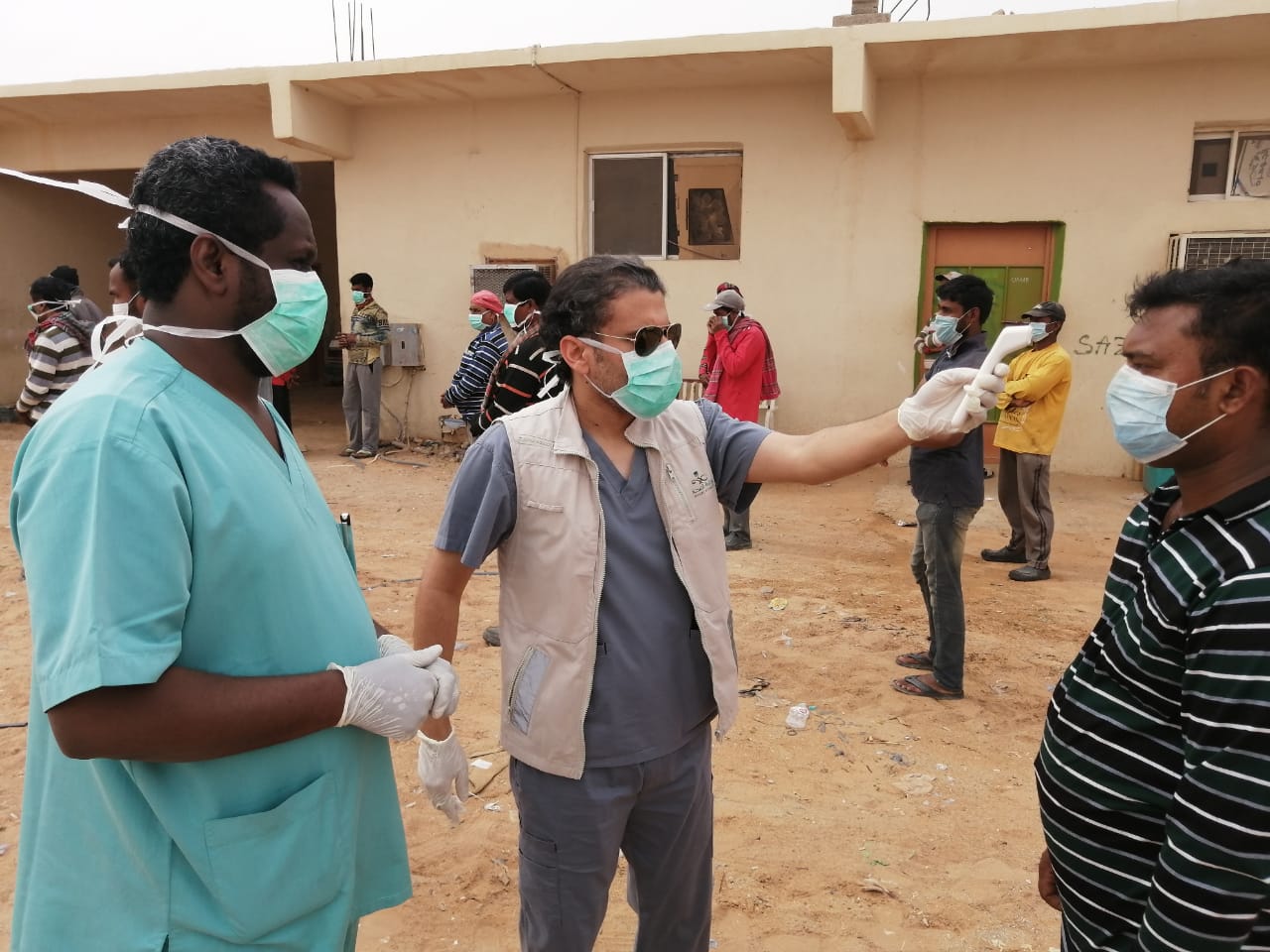 وجرى خلال الجولات الميدانية قياس درجات الحرارة للعمالة ، والتحقق من عدم وجود الأعراض عليهم، وتقديم التوعية الصحية اللازمة لهم بعدة لغات فيما تم أخذ عينات من عمال الشركات العاملة بالمستشفى.