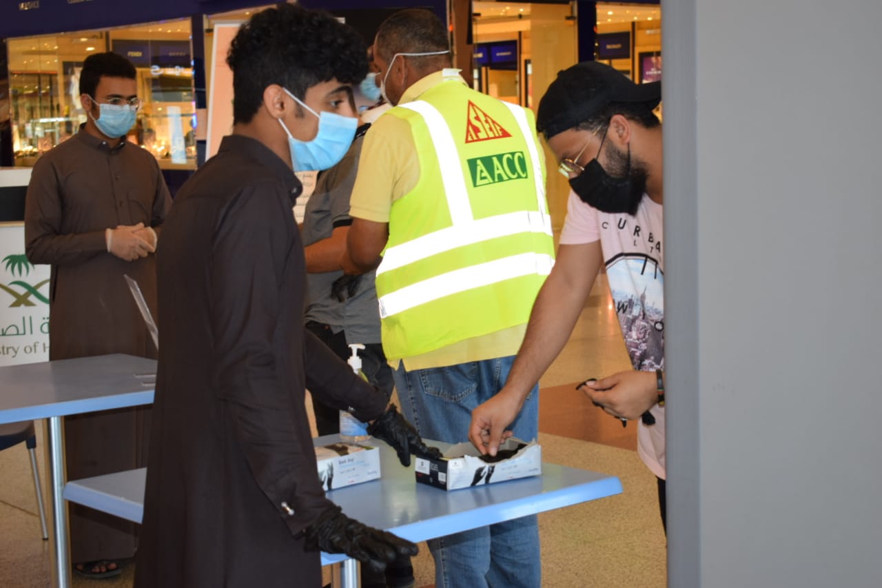 وأضاف: لقد حرصت ادرة الجمعية قبل إنزال المتطوعين للميدان على تثقيفهم من خلال إقامة عدد من المحاضرات التعريفية والتوعوية عن بعد ، مشيراً ألى أن المتطوعين يقومون بدور أساسي هذه الأيام من خلال ضمان تقديم أفضل الخِدْمات لمرتادي المجمع وتعريفهم بطرق الوقاية الصحيحة للحماية من هذا المرض ، ومتابعة التباعد الاجتماعي ، حيث يقوم المتطوع والمتطوعة بعمل الفحص الطبي لقياس لدرجة الحرارة ، وتقديم خِدْماتهم للمتسوقين، وتوجيههم إلى الأماكن التي يرغبون بالوصول إليها بشكل يضمن تباعدهم داخل المحلات التجارية مختلفة الأنشطة بالإضافة الى توزيع الكمامات والقفازات .