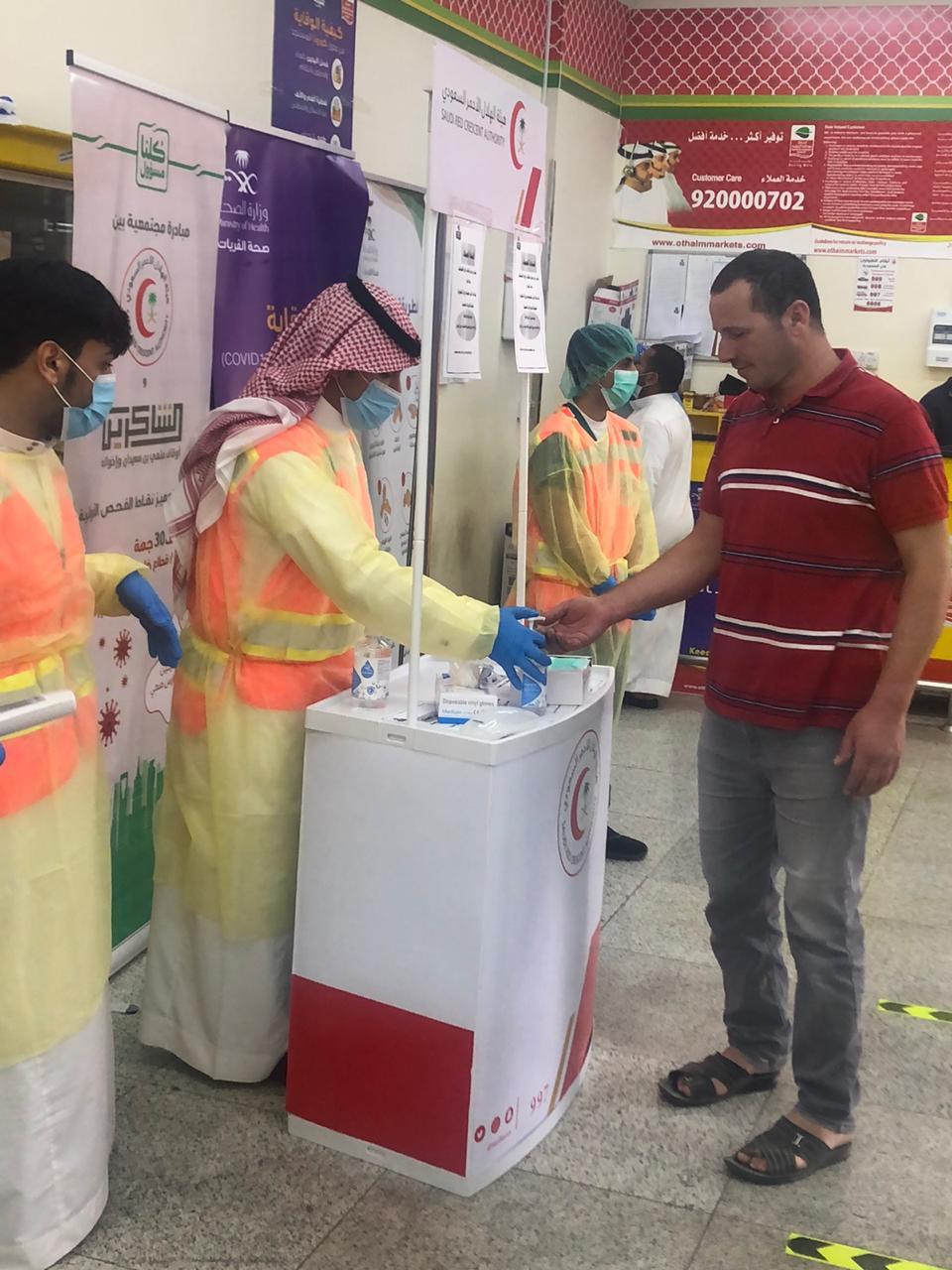 أقام فريق التطوع بمحافظة القريات التابع لفرع هيئة الهلال الأحمر بمنطقة الجوف نقطة فرز بصري بأحد الأسواق التجارية بالمحافظة .