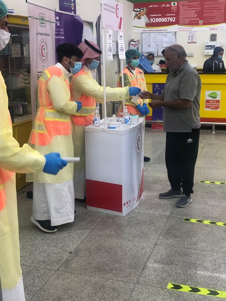 وقدم في هذه المشاركة والتي إستفاد منها زوار الموقع فحص لدرجة الحرارة وتقديم المعقمات والنصائح والإرشادات والتي من شأنها توعية أفراد المجتمع للتعامل مع جائحة فيروس كورونا المستجد .