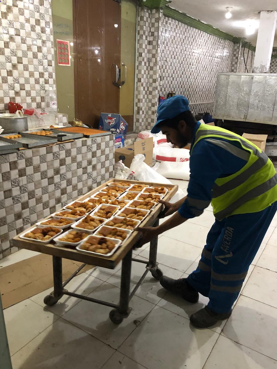 من خلال جولات الرقابة الصحية التي قامت بها بلدية محافظة محايل عسير تم ضبط مخبز لإنتاج انواع من المعجنات والفطائر والحلويات ، مخالف للإشتراطات الصحية وقد تم اغلاق المخبز بعد مصادرة أدوات ومعدات مستخدمة داخل المخبز اتضح عدم صلاحيتها للإستعمال تزن 240 كيلو ، وكذلك تم مصادرة 138 كيلو من انواع مختلفة من المعجنات والفطائر والحلويات الجاهزة للبيع لعدم صلاحيتها ، بسبب سوء الحفظ والتخزين .