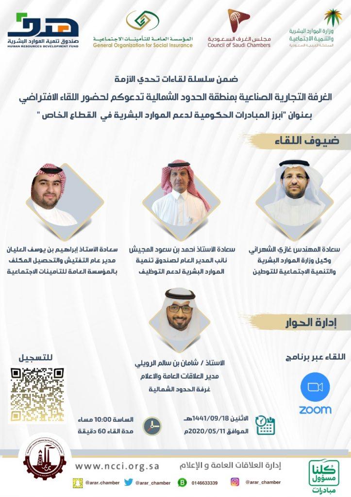 غرفة الشمالية تدعو لحضور (اللقاء الإفتراضي) أبرز المبادرات الحكومية لدعم الموارد البشرية في القطاع الخاص