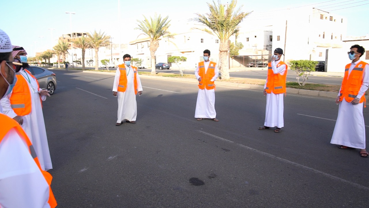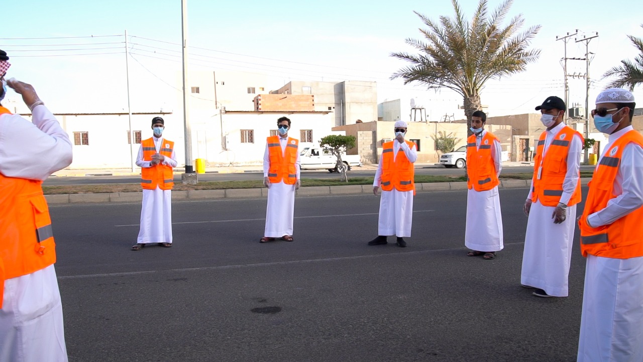 من جهته أوضح رئيس لجنة التنمية الاجتماعية الأهلية بأملج مساعد غيث الحبيشي أن الفريق التطوعي طبق أعلى معايير الاشتراطات الاحترازية على جميع المتطوعين الميدانيين لضمان سلامتهم وسلامة المستفيدين وهي قياس درجه الحراره قبل الخروج من المنزل للتطوع و غسل اليدين بالماء و الصابون لمدة لا تقل عن ٤٠ ثانية قبل البدء بالعمل وبعده والتأكيد على لبس القفاز و الكمام والتشديد على التباعد الاجتماعي وعدم المصافحة وترك مسافه لا تقل عن متر ونصف بين المتطوعين و المستفيدين بوضع السله الغذائية عند باب المستفيد والبعد قليلا عن الباب حتى يتم استلام السلة وكان شعار كل متطوع “كلنا مسؤول”