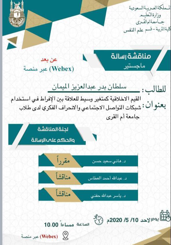 الاستاذ(سلطان بدر بن عبدالعزيز الميمان)يحصل على ماجستير علم النفس من جامعة ام القرى