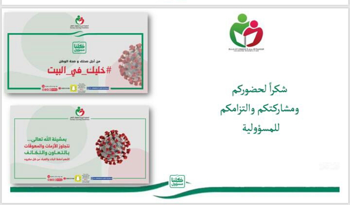 منطلقا من أن الجميع مسؤول بالالتزام بالدورالمناط به للمشاركة بالتصدي لهذه الجائحة العالمية ورفع الوعي المجتمعي لكل أفراد المجتمع فكلنا مسؤول بالتعاون والتكافل لبناء المجتمع .