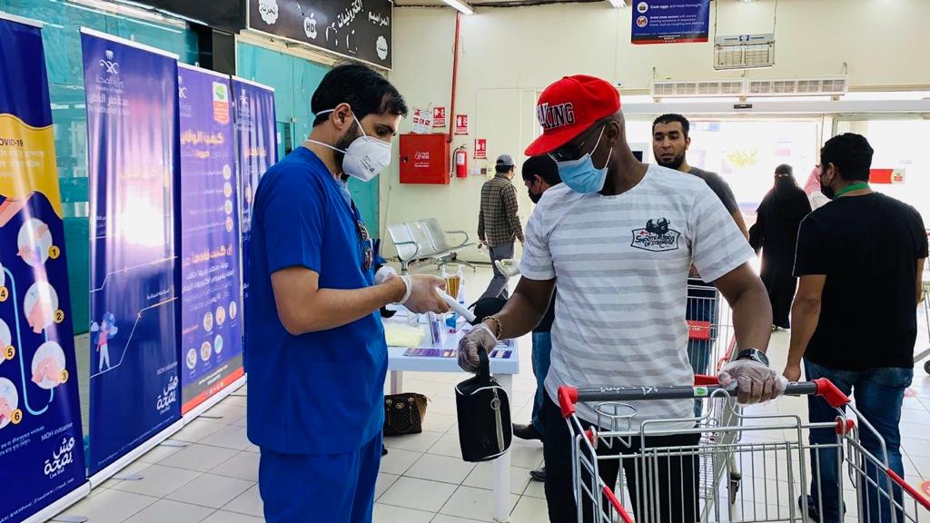 كثفت المديرية العامة للشؤون الصحية بحفر الباطن حملاتها الميدانية في المجمعات التجارية بهدف توعية المتسوقين بطرق الوقاية من خلال إتباع التعليمات والإرشادات والتأكد من التزامهم بالإجراءات الاحترازية والوقائية للحد من انتشار فيروس كورونا ( كوفيد-19) وقدمت الفرق الصحية مجموعة من الإرشادات والنصائح تضمنت تعقيم عربات التسوق وتوفير الكمامات والقفازات للمتسوقين عند مداخل مراكز التسوق وترك مسافات آمنة بين المتسوقين لا تقل عن مترين وكذلك قياس درجة الحرارة قبل الدخول، وتثقيفهم بالابتعاد عن التجمعات والأماكن المزدحمة وعدم الخروج إلا في حالات الضرورة القصوى ،بالإضافة إلى توزيع المنشورات والمطويات على المواطنين والمقيمين ، وتأتي هذه الحملات تماشياً مع توجيهات وتعليمات وزارة الصحة للوقاية من فيروس كورونا (كوفيد-19) ومنع انتشاره