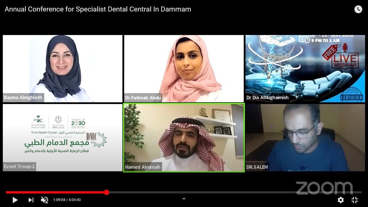 استقطب المؤتمر السنوي الأول الذي نظمه مركز طب الأسنان التخصصي بمجمع الدمام الطبي أحد منشآت التجمع الصحي الأول بالمنطقة الشرقية تحت عنوان ( المستجدات في طب الأسنان ) بالتعاون مع إدارة التدريب والشؤون الأكاديمية بالمجمع أكثر من ( 16 ألف ) متابع من دول العالم-على قنوات المشاهدة المختلفة مثل اليوتيوب – تويتر – فيس بوك و( 6 ألاف ) مشارك في القاعة الأفتراضية الذي ناقش فيه ( 20 ) متحدثا من المملكة العربية السعودية والإمارات والكويت على مدار ثلاثة أيام عددا من الأوراق العلمية المختصة في طب الأسنان وهو معتمد من الهيئة السعودية للتخصصات الصحية بـ 12 ساعة تعليم طبي مستمر وذلك عبر تقنية الاتصال المرئي