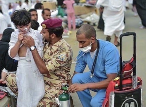 يقدم رجال الأمن في المشاعر المقدسة جهود إنسانية في سبيل خدمة ضيوف الرحمن بالإضافة إلى أداء عملهم المناط بهم في سبيل حراسة وأمن الحجاج، فلم يبخلوا بتقديم الأعمال الأنسانية التي تساعد الحجاج في أداء مناسكهم بيسر وسهولة، تحت شعار (عين تحرس ويد تبذل).