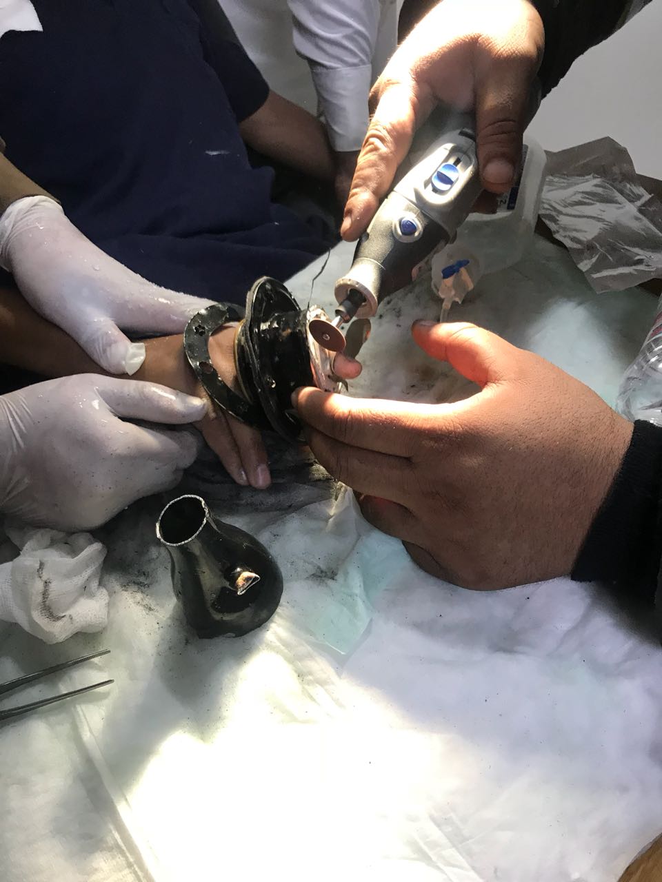 أوضح المتحدث الإعلامي لمديرية الدفاع المدني بمنطقة الجوف النقيب / عبدالرحمن بن عبدالعزيز الضويحي أن فرق الدفاع المدني بمحافظة القريات باشرت بلاغاً تمثل بإحتجاز يد طفل يبلغ من العمر خمسة عشر سنة داخل فتحة خزان وقود سيارة من نوع فورد تابعة لأحد أقرباءه حيث تم مباشرة الحالة من قِبل الفرق المختصة وتم نقله بواسطة الهلال الأحمر للمستشفى وتم إستخراج يد الطفل من فتحة خزان الوقود بإشراف طبي ولله الحمد .