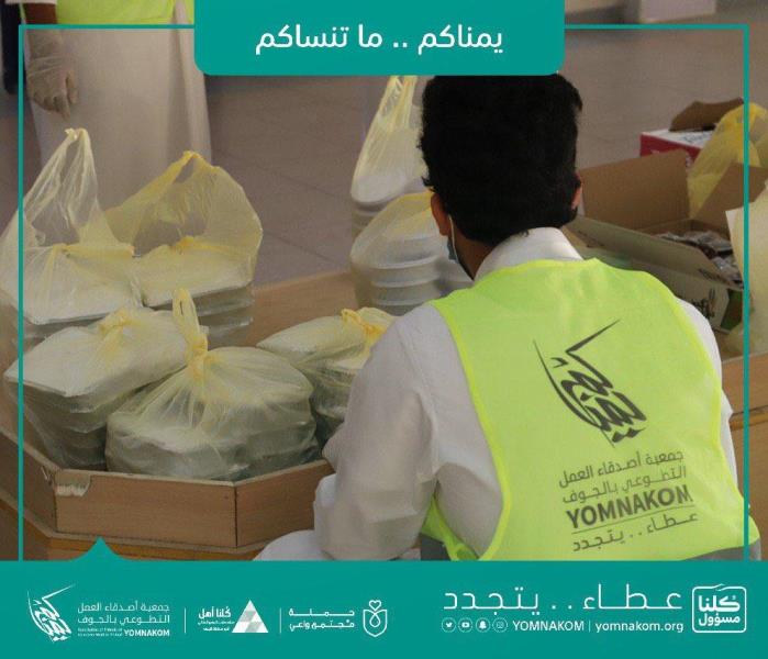 ساهم متطوعو جمعية أصدقاء العمل التطوعي بالجوف (يمناكم) ، بتوزيع 26348 إفطار صائم و 15471 وجبة سحور ؛ شملت 41819 مستفيدًا ، وتم توزيع الواجبات على الأسر المحتاجة و المتعففة في منازلهم ، بالإضافة إلى مواقع سكن العمالة و ذلك ضمن الإجراءات الاحترازية لمواجهة انتشار فيروس كورونا .