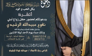 “مبارك بن مرزوق الرشيدي” يحتفل بزواج نجله “إبراهيم” في بدع بن خلف .. ويوجه الشكر لمن قدم التهاني