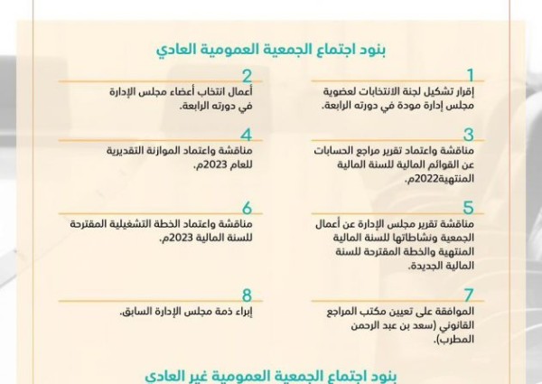 الجمعية العمومية لـ “مودة ” تبدأ أعمالها ١٤ مارس ٢٠٢٣م